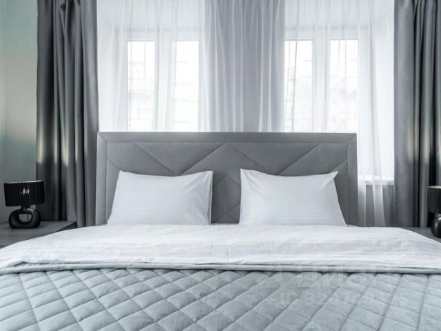 Комфортная большая двухспальная кровать, с удобным качественным матрасом и белоснежным постельным бельём из сатина