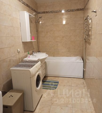 Санузел совмещенный, установлена новая тумба под раковиной, есть также небольшая тумбочка с ящичками, зеркало с дверцей и верхней подсветкой, ванна.