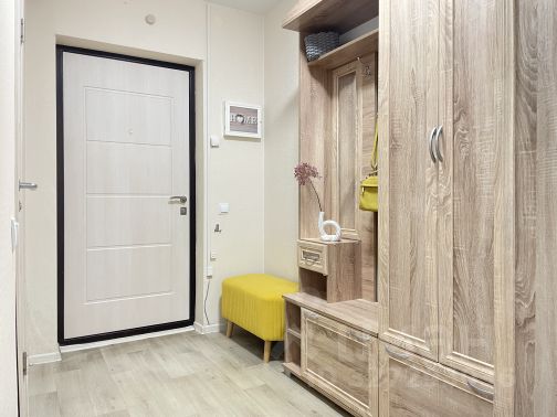 Прекрасная, просторная кухня, большая прихожая, удобная система хранения вещей.