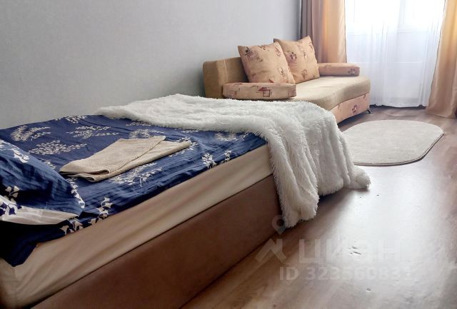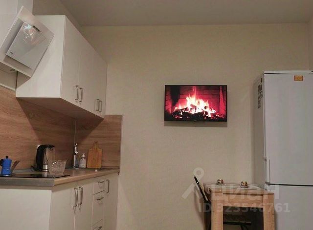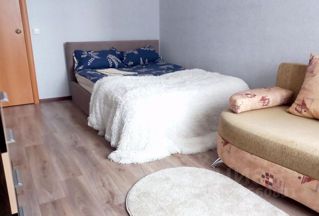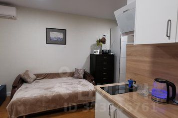 • Кухня-гостиная с двуспальным диваном и кухонным гарнитуром.
