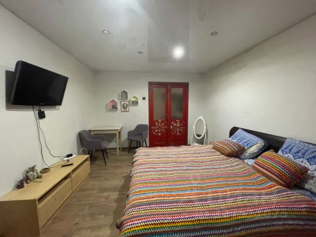 Комната: двуспальная кровать 160200 с качественным матрасом повышенной жёсткости. Возможна организация дополнительного спального места на раскладушке 19080 с комфортным матрасом.