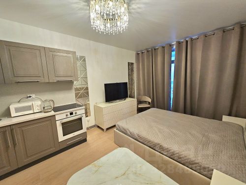 Предлагается в аренду стильная студия с видом на город для тех, кто привык комфортно спать! Расположена на 17 этаже-очень красивый панорамный вид. В квартире не будет жарко летом- окна на восток- солнца к 11.30 уже нет. Метраж студии 26,5, не считая лоджии 3,5 м2. Большая полноценная 2-х спальная кровать с качественным ортепедическим матрасом и мягким высоким изголовьем. Кровать с подъемным механизмом. Поэтому места для хранения достатачно для проживания двух человек. Мебель изготавливалась на заказ. Большой SMART-телевизор, расположенный на уровне глаз, уже подключен к интернету. Много мест для хранения: 2 шкафа, комод 1505080), тумбочки прикроватные, тумбочка на входе и место под кроватью с подъемным механизмом. В прихожей под кафелем проходят трубы горячей воды, поэтому пол тёплый. Карниз двойной, при желании можно повесить тюль. На лоджии шкаф для одежды и гладильной доски. Возможно проживание одного или двух человек на срок не менее 6 месяцев. Отдельно оплачиваются коммуналка в размере 3 000 руб., вода, свет и интернет (выбор тарифа-по Вашему желанию). Вытяжка полноценная, выходит в вентилляционную шахту. Страховой депозит можно разбить на 2 месяца. Ширина лоджии 127 см., при необходимости там можно разместить большой рабочий стол. Студия расположена рядом с центром города! В шаговой доступности ТЦ "Небо", парк Горького и Кулибина, театры, кафе и рестораны. Оперативный показ. Звоните!