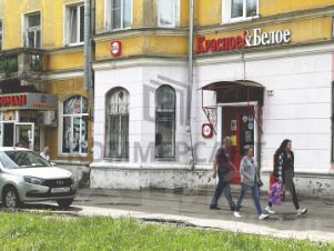 1 этаж, отдельный вход с красной линии (общий тамбур с соседним помещением), невысокое крыльцо, 2 объёмных торговых зала + по...